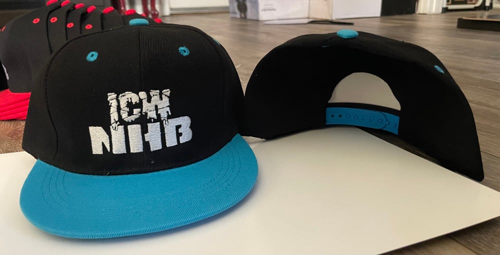ICW NHB Black with Teal Brim with White Logo Snapback Hat